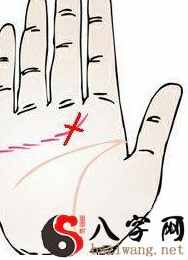 太阳线有岛纹或像十字形,全是毁坏太阳线,意味着威望或金钱的损害。